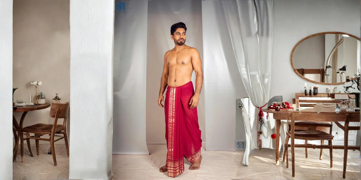 - For South Indian Style: Wrap the double layer dhoti around your waist, ensure the ends meet in the middle, and tie a knot or tuck it firmly. Fold the bottom upward for a casual look.